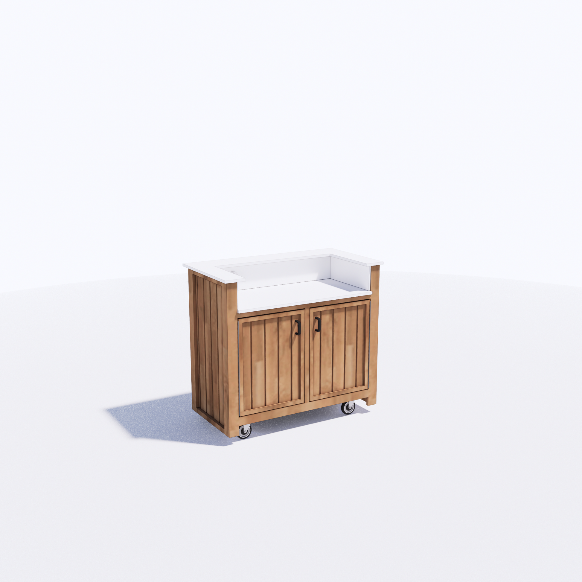 The host stand is designed to be easy to service and maintain. The exterior panelling is attached to a light and strong powder coated aluminum frame w/ concealed stainless steel fasteners. Every component can be removed or replaced as needed.