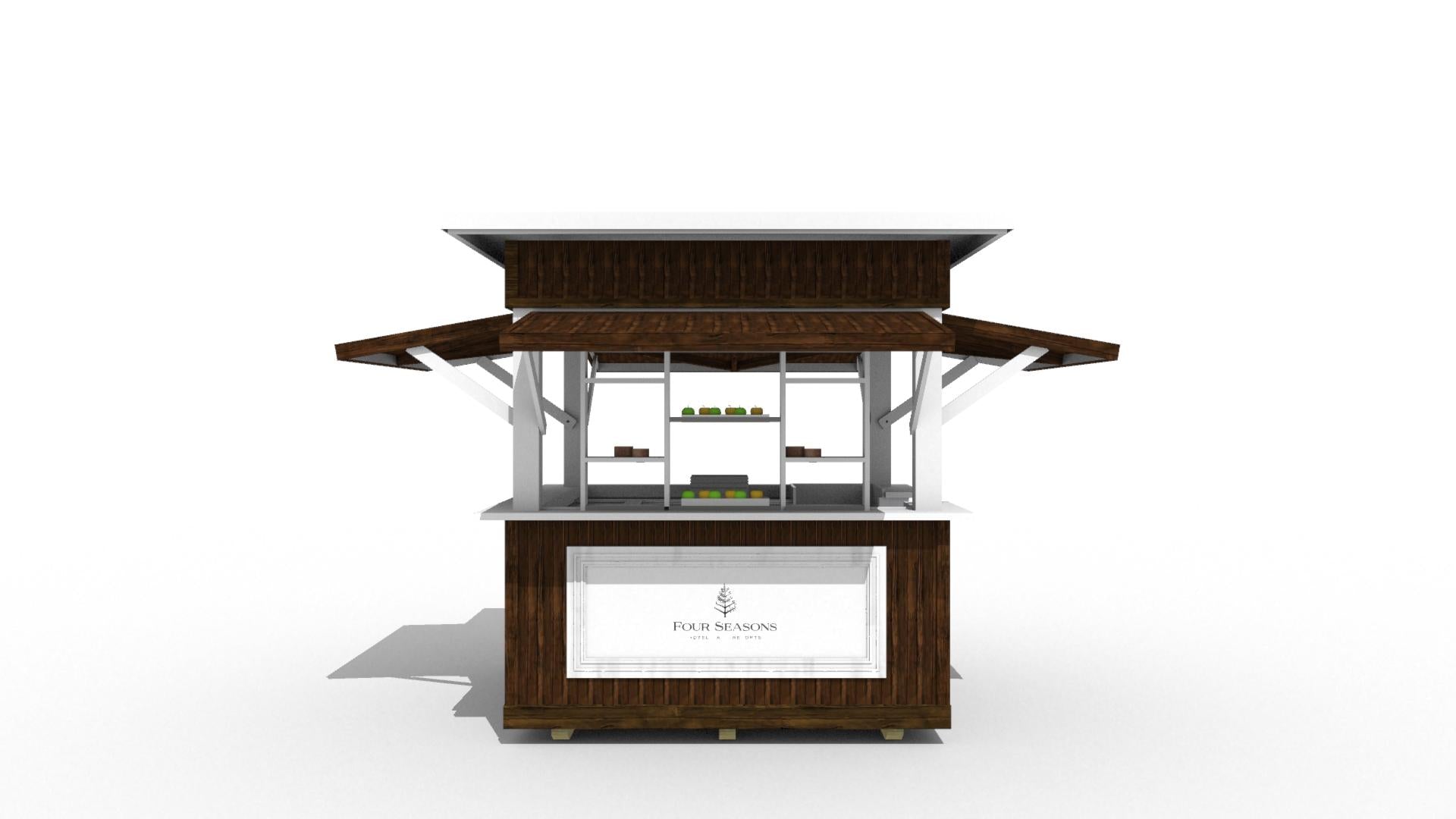 This high-end pool or beach service hut is the perfect addition to any outdoor or indoor hospitality setting. It comes in three standard finishes: Painted (TP), Stained (TS) or Kebony®(KE).