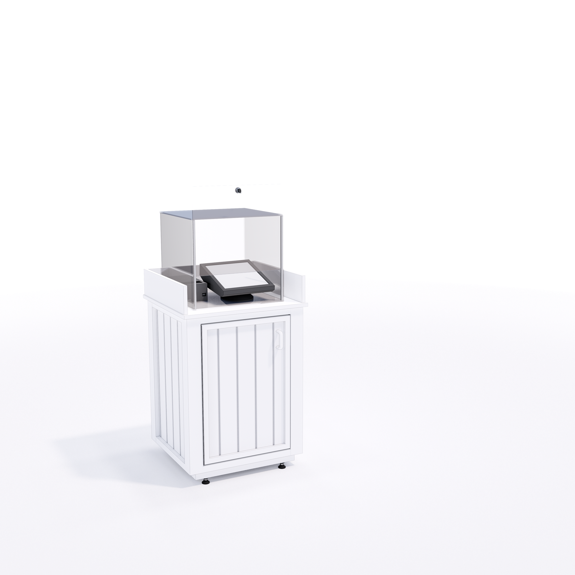 The POS Stand is designed to be easy to service and maintain. The exterior panelling is attached to a light and strong powder coated aluminum frame w/ concealed stainless steel fasteners. Every component can be removed or replaced as needed.