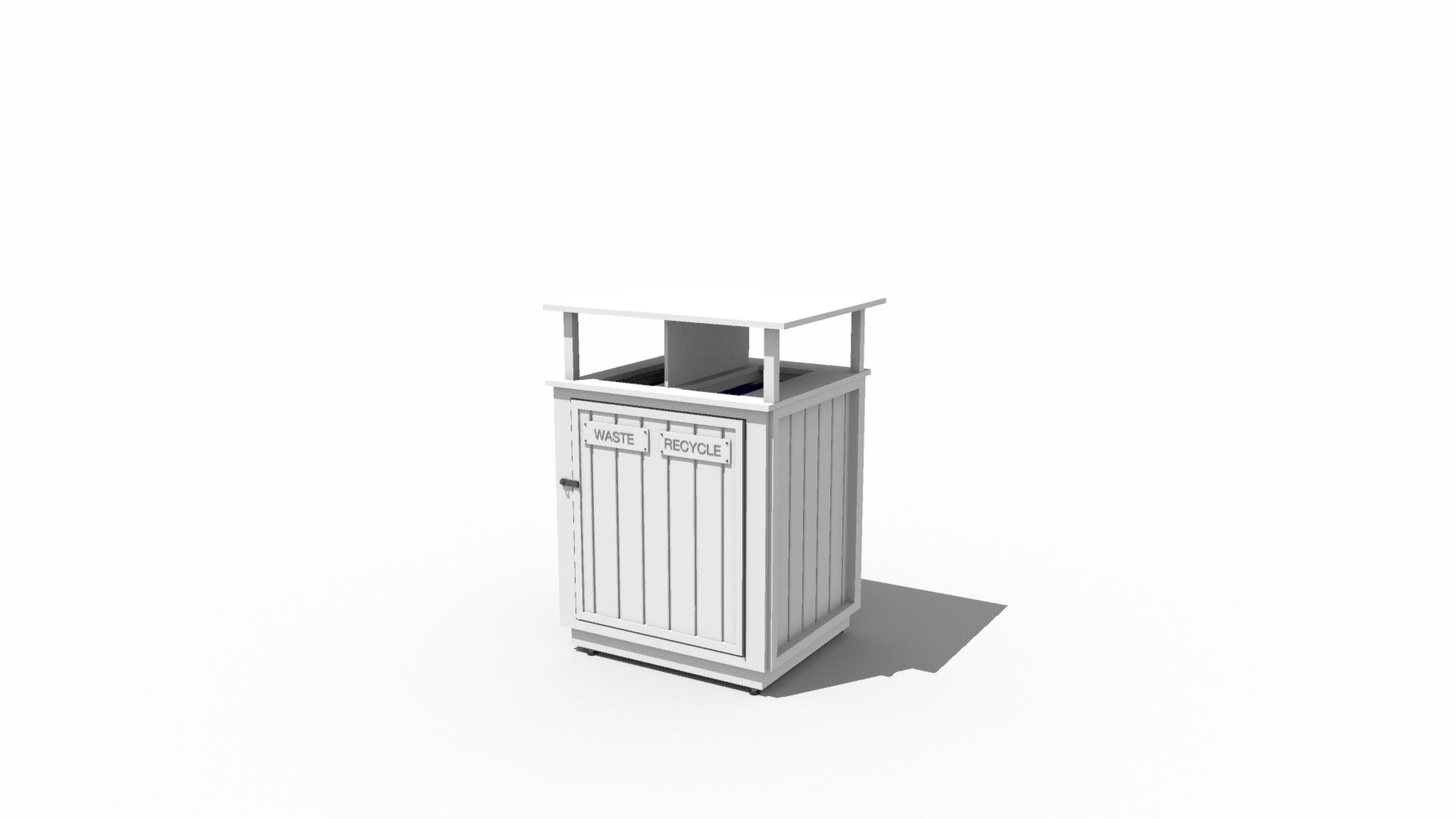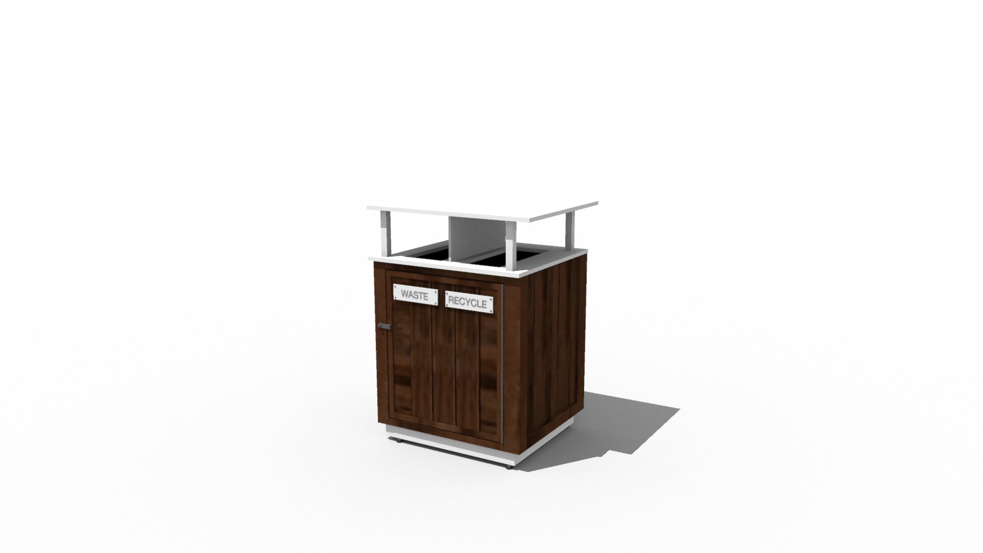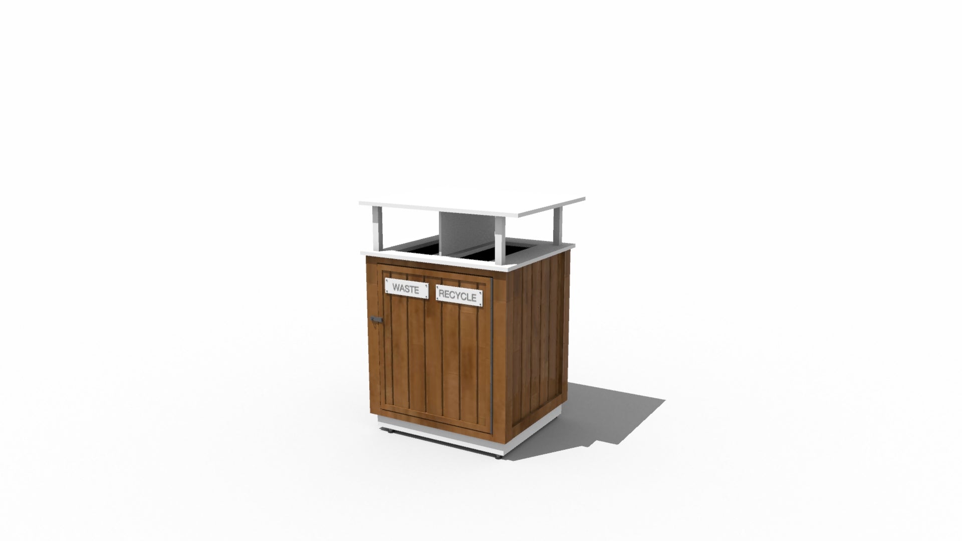 The waste bin is designed to be easy to service and maintain. The exterior panelling is attached to a light and strong powder coated aluminum frame w/ concealed stainless steel fasteners. Every component can be removed or replaced as needed.