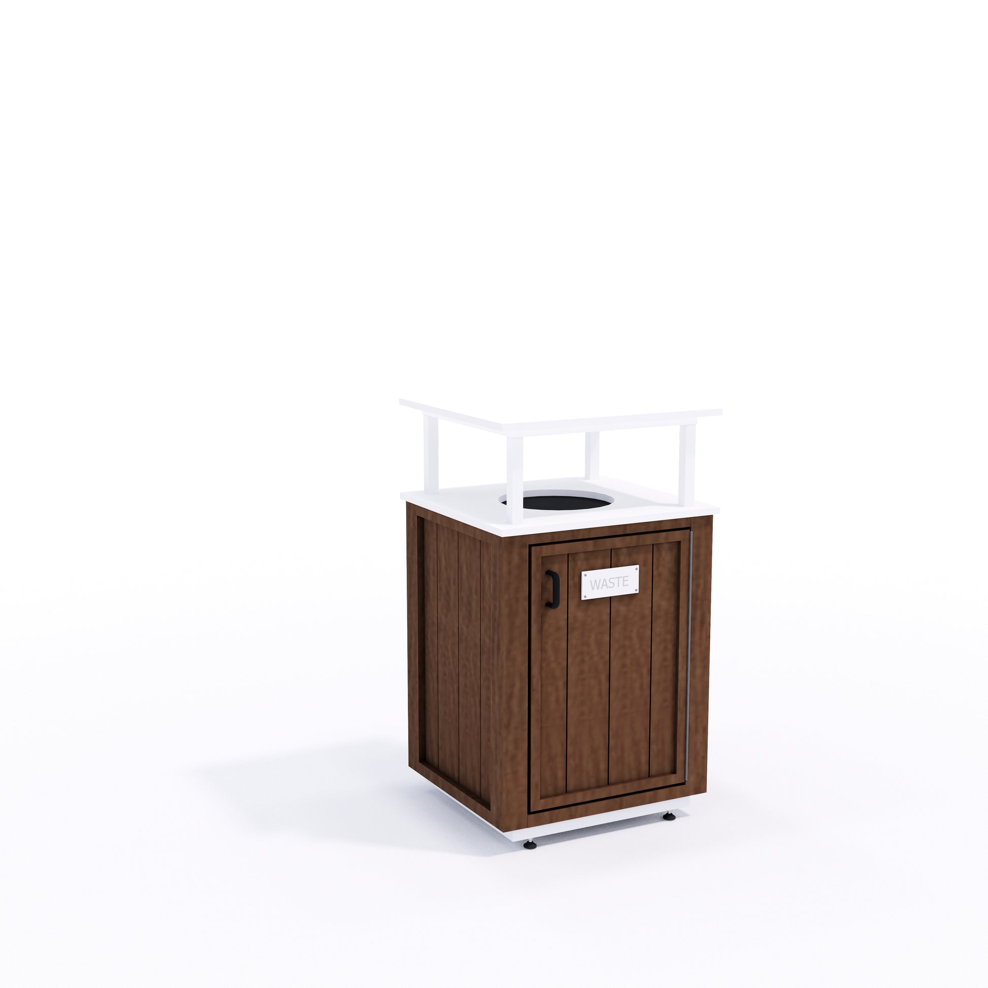 This high-end waste bin is the perfect addition to any outdoor or indoor hospitality setting. It comes in three standard finishes: Painted (TP), Stained (TS) or Kebony®(KE).