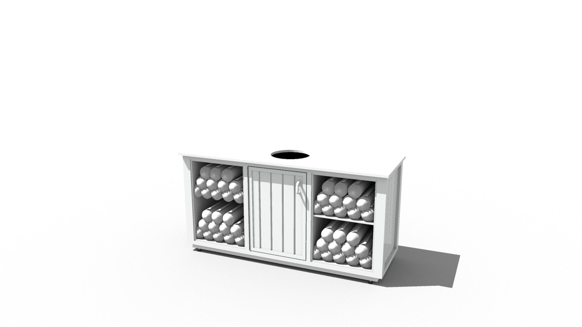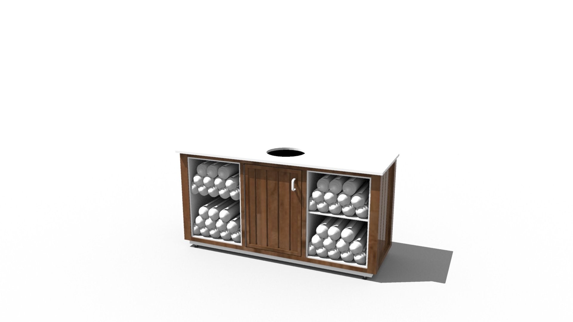 The service stand is designed to be easy to service and maintain. The exterior panelling is attached to a light and strong powder coated aluminum frame w/ concealed stainless steel fasteners. Every component can be removed or replaced as needed.